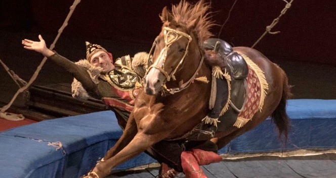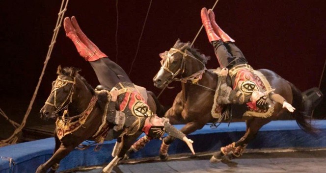 - Бесстрашные джигиты под руководством заслуженного артиста Сергея Муратова — зрелищные трюки верхом на лошадях.