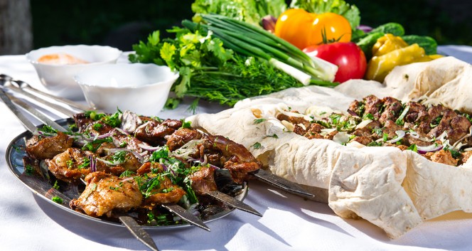 Блюда и напитки в ресторане «Шашлык-Хауз» в центре города. От 225 р. за шашлыкУсловия акции