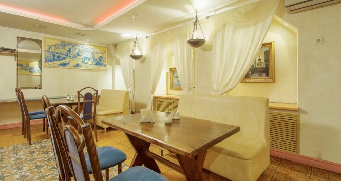 - Здесь все располагает к неторопливому и приятному отдыху в кругу близких. Дизайнерский интерьер в старинном стиле приятно порадует посетителей: светильники с имитацией живого огня, мягкие диваны, массивные столы из дерева.